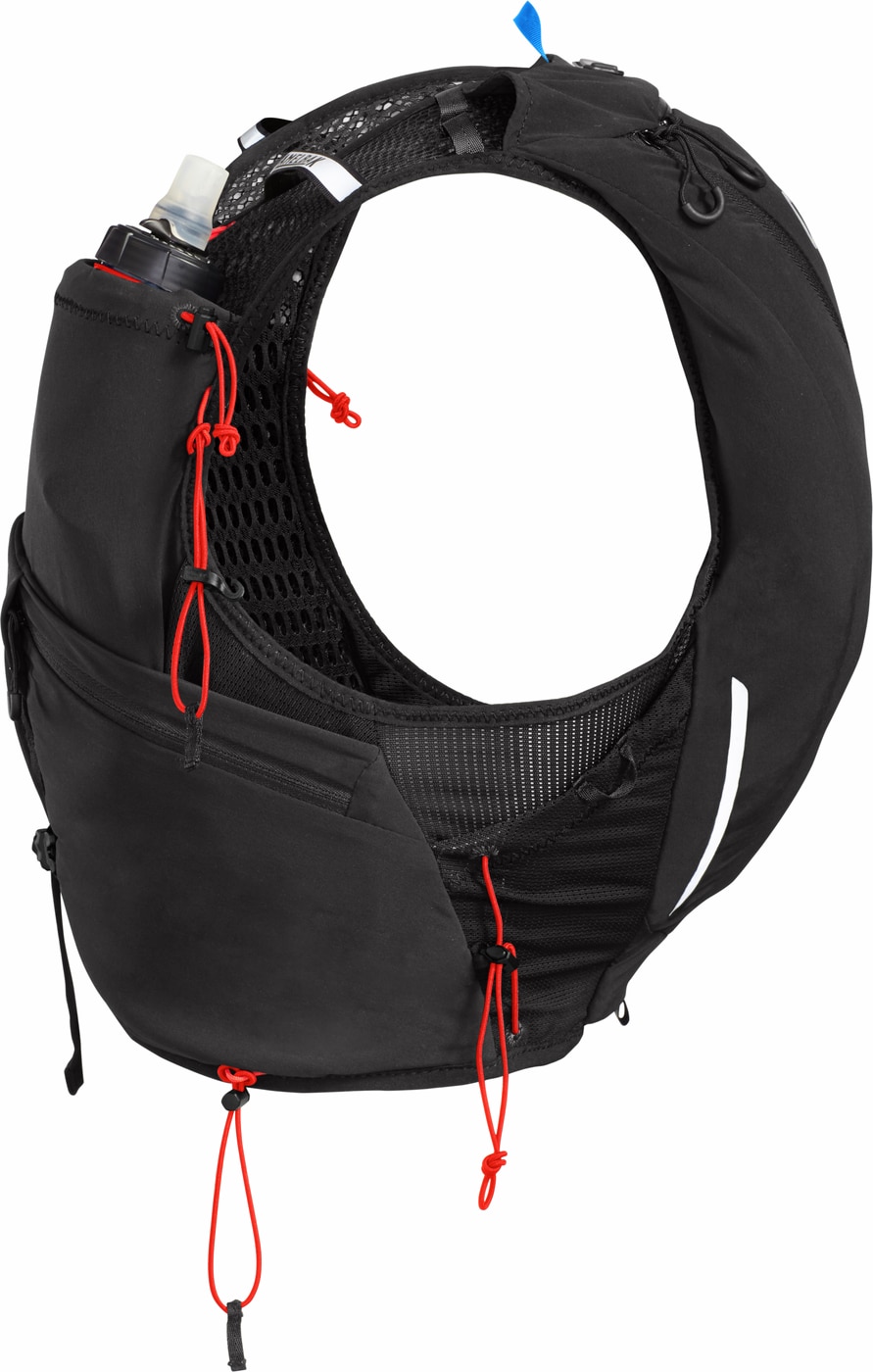 CamelBak Apex Pro Run Vest är en toppmodern löparväst designad för att möta kraven hos både professionella och entusiastiska löpare. Med sitt lätta och andningsbara material ger västen maximal komfort under långa löpturer. Den ergonomiska passformen säkerställer att västen sitter nära kroppen utan att begränsa rörelsefriheten, vilket gör den idealisk för krävande terränglopp eller ultralopp. Apex Pro Run Vest har flera praktiska fickor som ger enkel åtkomst till energigel, mobiltelefon eller andra nödvändigheter under vägen.