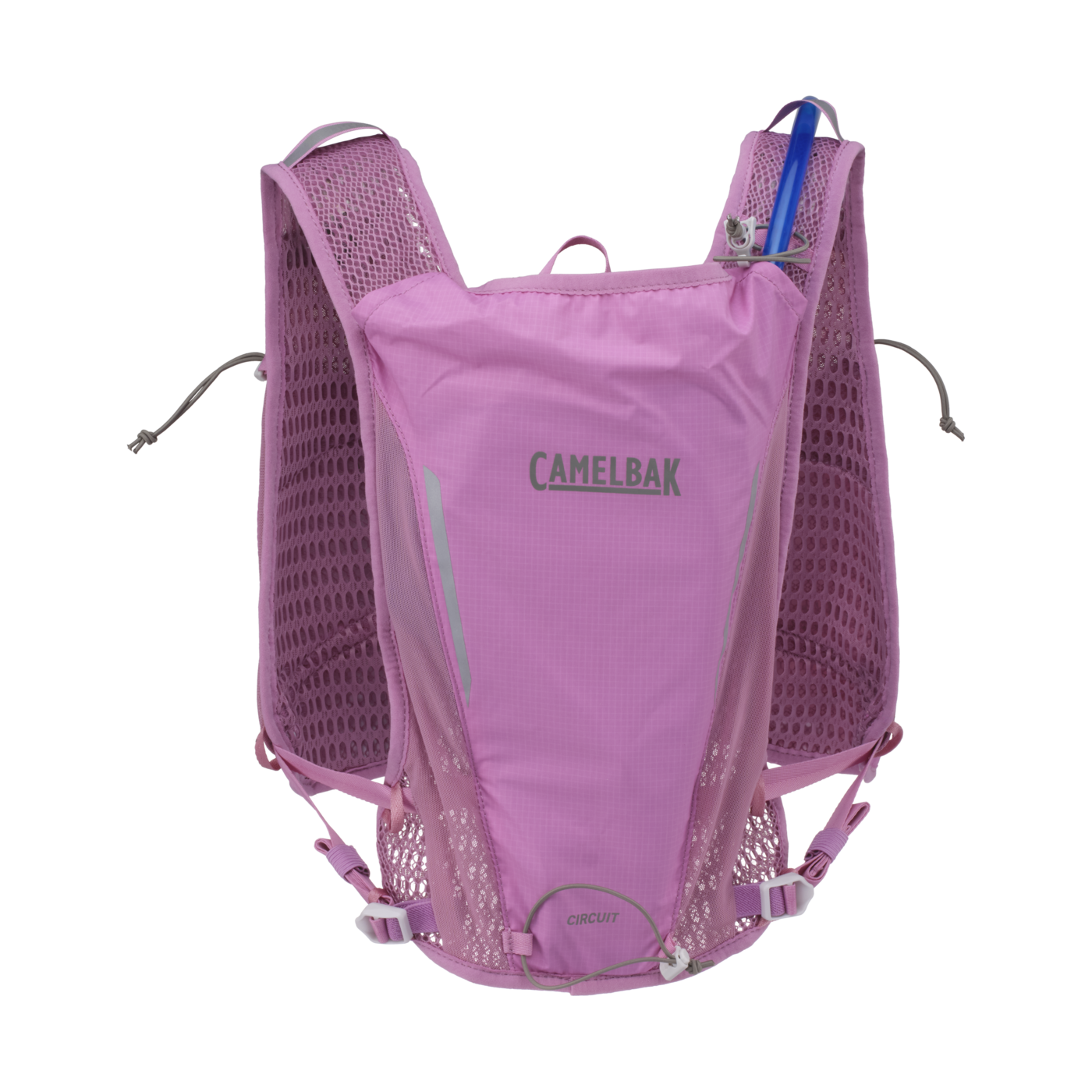 Women's Circuit™ Vest inkluderar en 1,5L/50oz CRUX™-vätskebehållare som levererar 20 % mer vatten per klunk och är lätt nog för att bära med dig under långa löprundor. Designad specifikt för kvinnor har de främre panelerna fyra olika fickor för mjuka flaskor, vilket ger dig möjlighet att anpassa var du förvarar extra vätska eller utrustning.