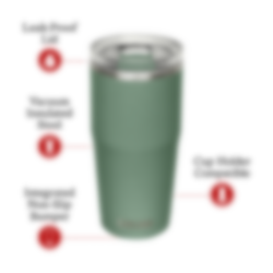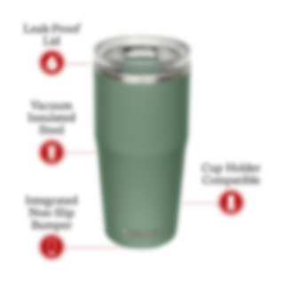 Thrive™ Tumbler 30 oz är gjord för livet på resande fot. Den har en integrerad halkfri stötfångare för ett säkert grepp på nästan vilken yta som helst, ett läckagesäkert lock och är vakuumisolerad för att hålla din drink kall eller varm i timmar. Det bästa av allt är att den är kompatibel med mugghållare, så att du alltid är redo att ge dig ut på vägen.