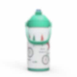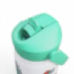 Locket har en helt ny och mer hygienisk design där drickpipen täcks när det är stängt, vilket skyddar det från smuts och bakterier. Dessutom har locket ett praktiskt silikonhandtag, som gör det enkelt för barnen att bära med sig flaskan. Flaskan har också en silikonbotten som skyddar mot stötar och håller både flaska och underlag oskadat.