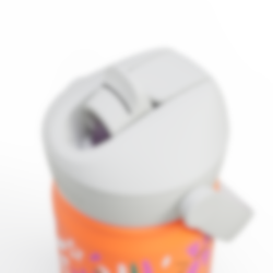 Locket har en helt ny och mer hygienisk design där drickpipen täcks när det är stängt, vilket skyddar det från smuts och bakterier. Dessutom har locket ett praktiskt silikonhandtag, som gör det enkelt för barnen att bära med sig flaskan. Flaskan har också en silikonbotten som skyddar mot stötar och håller både flaska och underlag oskadat.